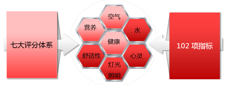 7大体系102项性能指标和设计策略,WELL建筑标准是由建筑的业主、设计师、工程师、承包商、住户以及运行商共同实现,是从设计到施工到运营的一条龙服务,其审查则必须由第三方进行现场评估和性能检测,是绿色建筑认证之一。