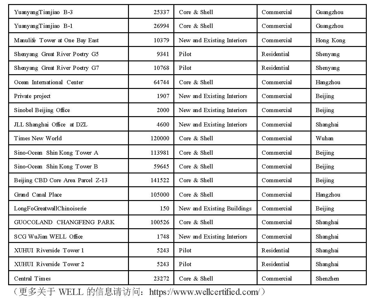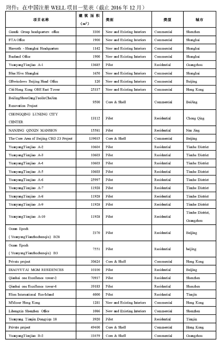 附件:在中国注册WELL项目一览表(截止2016年12月)