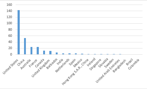 图5 全球各国WELL认证数量统计