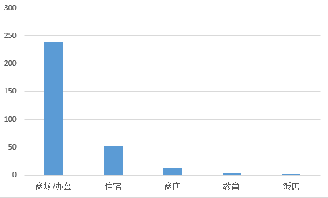 图6可知,全球已注册的313个项目中,办公和商场的数量为240个,占比76.7%,其次是住宅52个,占比16.6%。