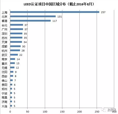 图9 各省市LEED认证项目数量统计